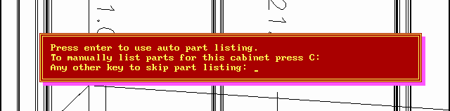 If the part listing feature of Designer Plus is turned on, after the cabinet is drawn and before it is blocked the query below is displayed.